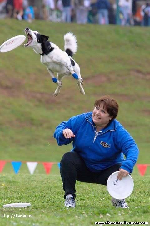 Мои шнауцеры тоже очень любят фрисби ( леоающую тарелку), но таких высот нам не достичь.