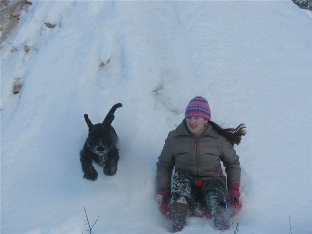 Кататься с горы весело, а рядом бежать тоже здорово. Чёрный митель Гуцис